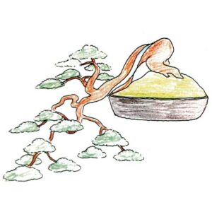 Finalement, même si on a bien choisi les pots pour les arbres mais que l’on se trompe dans le positionnement au moment du rempotage, on peut perdre tout l’effet. Les arbres ont toujours un mouvement. Même avec ceux à tronc droit, dont le sommet se situe légèrement vers la gauche ou la droite, mais jamais au centre.