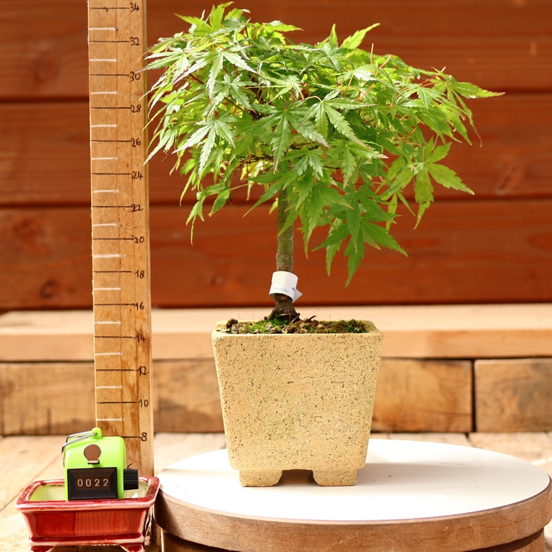 Erable formé pour devenir un jour bonsaï. Arbre à feuilles trilobées, prenant en automne de très belles couleurs dans une gamme de rouges, d’orangés ou de pourpres pendant une longue période. Remarquable par son port et la coloration de ses feuilles. Adapté à la culture du bonsaï, grand intérêt ornemental.