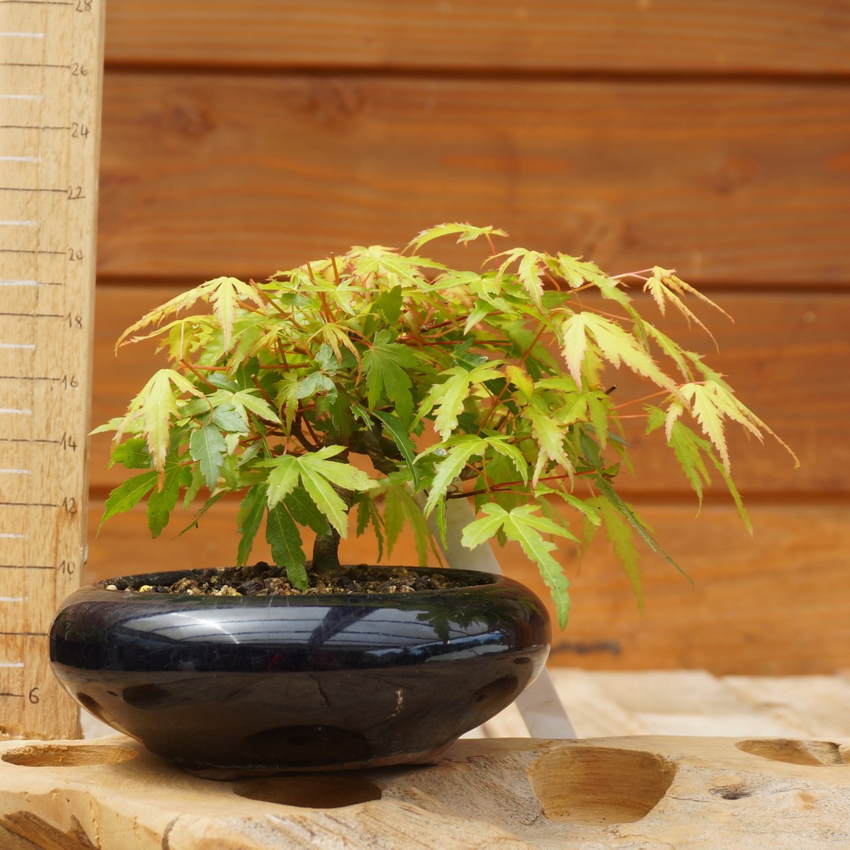 Erable formé pour devenir un jour bonsaï. Arbre à feuilles trilobées, prenant en automne de très belles couleurs dans une gamme de rouges, d’orangés ou de pourpres pendant une longue période. Remarquable par son port et la coloration de ses feuilles. Adapté à la culture du bonsaï, grand intérêt ornemental.