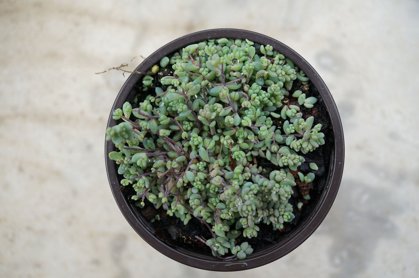 Sedum dasyphyllum ‘Lila Mound’ – Feuilles en forme de minuscules bulbilles gris bleuté. Ajouter, au besoin, un peu de terreau pour favoriser le développement au printemps..