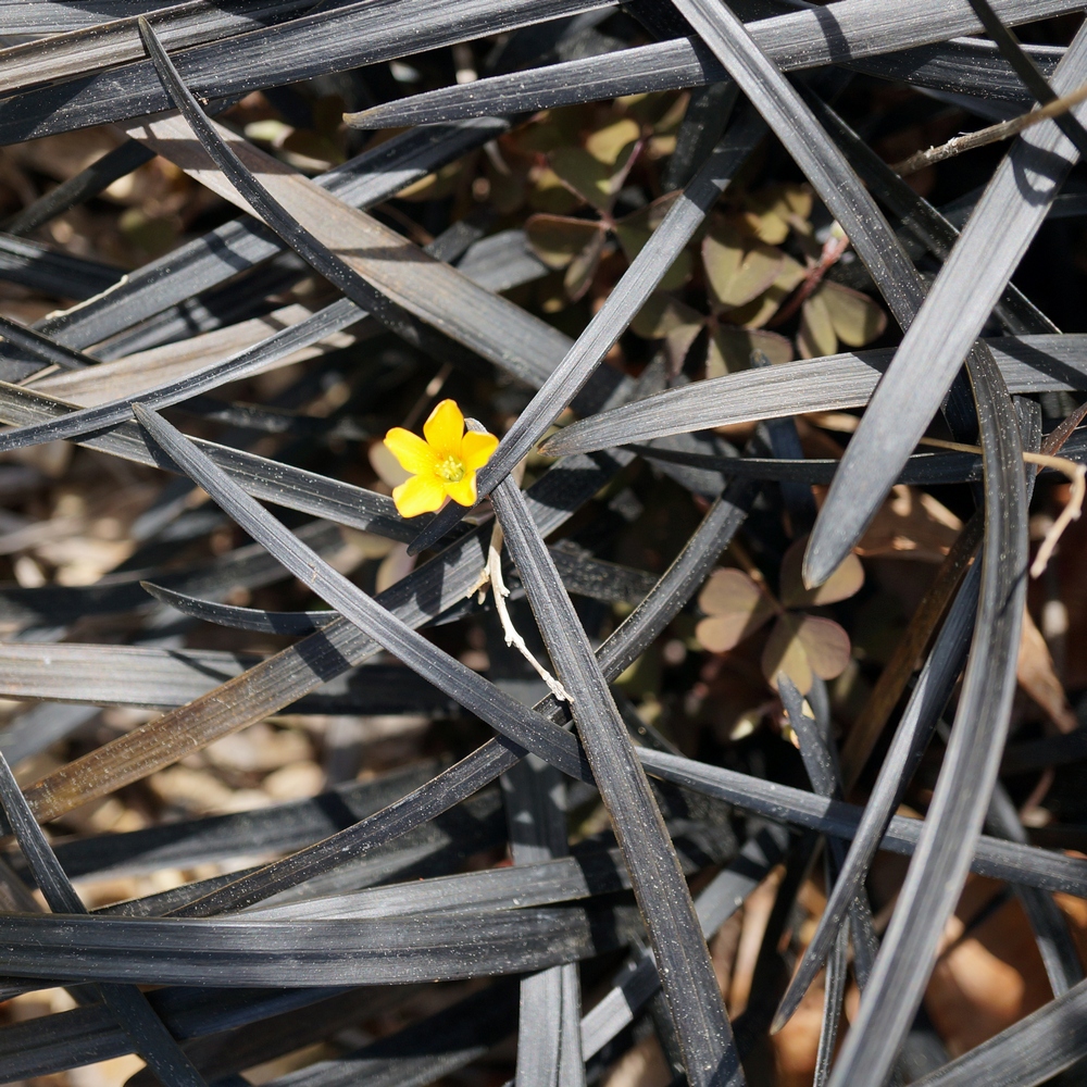 Ophiopogon planiscapus ‘Nigrescens’ : Vivace étonnante, au feuillage presque noir, aimant aussi bien le plein soleil que le pied des arbres où quasiment rien ne pousse. On peut l’associer avec des feuillages argentés ou des plantes à la floraison blanche pour un résultat très graphique.
